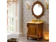 欧式简约实木浴室柜 高端仿古橡木落地洗手台组合 整体雕花卫浴柜